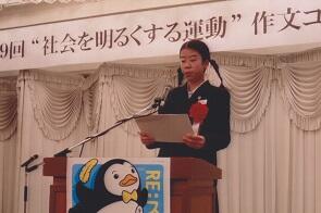 もう,一つは「社会を明るくする運動」作文コンテストで1年生の三浦さんが特別賞を頂きました。1月10日(金)の表彰式は仙台市のホテルで行われました。会場では,皆さんの前で賞状をいただき,作文の朗読発表も行われました。犯罪の発生と社会の在り方,地域の支えの大切さと感謝,中学生としての自立に向けた努力などについて,中学生らしい意見がまとめられた作文でした。当日は,少し緊張した面持ちでしたが,しっかりとした朗読ができました。入賞おめでとうございます。