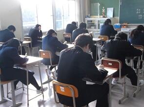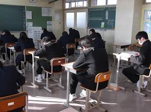 本日は令和5年の最初の授業日です。1時間目に学級活動を行った後,2~6時間目は5教科のテストでした。生徒は一生懸命に問題に取り組んでいました。