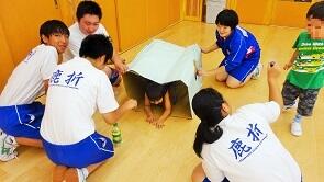 出会いの会を行った後は,おもちゃを使った体験学習に入ります。生徒は班ごとにおもちゃをつくり,工夫して幼児と遊びました。1班は「ビー玉ころころ・段ボールトンネル」,2班は「ピタゴラスイッチ・お菓子屋さん」,3班は「すごろく・ギター」,4班は「もぐらたたき」,5班は「クラッカー・卵パック迷路」,6班は「魚釣り・ぐるぐる紙コップ」です。それぞれよく工夫していました。
