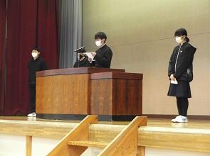 今週16日,生徒集会が行われました。本校では生徒会のことを「鹿峰会(ろくほうかい)」と呼んでいます。各委員会の委員長さんは,10月に3年生から2年生にバトンタッチされていて,今日の集会でも2年生の委員長さん方が活動の発表や今後の予定などを話しました。これからも頑張ってください!