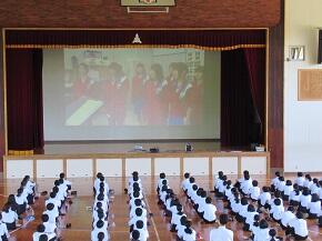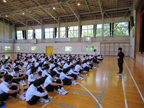 7月3日(土)の合唱コンクールでは,全校合唱として「群青」を披露します。今日の4校時は,全校道徳で「群青」という曲について学び,考えました。この曲は,福島県の小高中学校の生徒が作詞し,先生が作曲したものです。福島第一原発事故で離ればなれになった小高中の生徒たち。学校のスクールカラー「群青」をモチーフに曲ができました。生徒たちは,震災後の小高中学校を学び,この曲に込められた気持ちを学びました。当日気持ちのこもった全校合唱になるものと信じています。