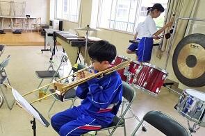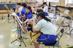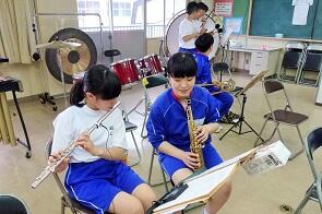 そして,上級生が下級生にアドバイスを丁寧にしたり,グループで音や楽譜を確認し合ったりしています。やはり先輩の存在は大きいですね。さすがです。そんな先輩に聞くと「1年生の成長が凄いんです。追い越されそうです」と嬉しそうに言うのです。アンサンブルコンテストに3人で取り組んできた先輩たちは,10人で取り組む今の音楽に喜びを感じていると思います。初めての楽器に触って2ヶ月の1年生も一生懸命です。このメンバーで県大会への切符がとれたら凄いですね。頑張れ,吹奏楽部!