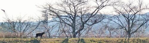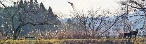 12月21日(金)2学期終業式を終えた後,生徒が先生から通信票を受け取っている頃,校庭の南側の土手に鹿が現れました。(写真左下)鹿も通信票をもらいに来たのでしょうか。どうやらカモシカのようです。