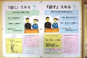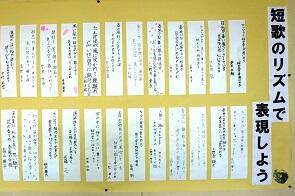 国語科教室は3階の3年生教室の隣にあります。昨年は3年2組教室でしたが,今年は3年生が1学級なので,これを国語科教室として活用しています。ごく普通の教室ですが,どの学年も国語の時間はこの教室で学習するのです。教室には国語科で重要視する内容を大きく掲示しています。また,学習資料や関連図書・参考図書を用意しています。国語辞典や百人一首などの備品も収納しています。先日の授業研究会のときには,どの生徒の机にも国語辞典が置かれており,いつでも直ぐに言葉を調べることのできる環境になっています。他教科にも広がるかもしれません。
