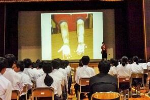 「非行防止」は気仙沼警察署生活安全課の永井千智様からプレゼンをしていただきながら,お話を伺いました。例えば「万引き」をすると,悪い仲間ができ,大切な友達を失い,もっと悪いことをするようになると説明がありました。生徒は決して軽はずみな気持ちでそのようなことをしてはいけないと感じたと思います。