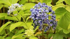 「青いあじさい」だとだけ思って,写真を撮ったのですが,よく見ると色は同じでも花の形状が異なっていることに気付きました。すっかり同じ品種だと思い込んでいたのでした。こんな花をつけるあじさいもあるのですね。(右)隣同士の株だったので,そして色味も同じだったので,自分の思い込みに気付かなかったのです。