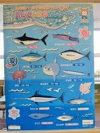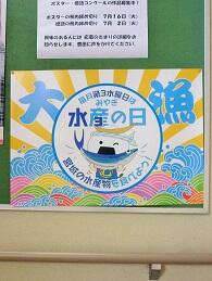 校舎内には様々なポスターなどが掲示されています。ここに集めたのはお魚に関連するポスターです。水産業が基幹産業である気仙沼市ですから当然と言えば当然ですが,お魚に関連するポスターが結構目立ちます。上の写真は,左から①旬の魚を紹介するポスター,②様々な魚を紹介するポスター,③毎月第3水曜日の「みやぎ水産の日」をピーアールするポスターです。