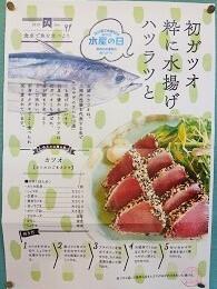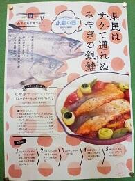 気仙沼の子どもたちですから,季節によって市場に上がる魚が異なることは当然知っていると思うのですが,地元の旬の食材の美味しさを実感で分かっていてほしいものです。その時々の美味しいものを知っていることはとても大切です。そして幸福なことだと思います。旬の美味しいものを分かち合い,楽しみながら,故郷の魅力を感じてほしいですね。下のポスターは「みやぎ水産の日」にちなんだレシピを紹介するポスターです。思わず食欲がそそられるいいポスターです。さて,今年もカツオの水揚げ日本一となることができるのでしょうか?戻りカツオも楽しみにしたいものですね。