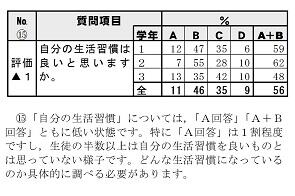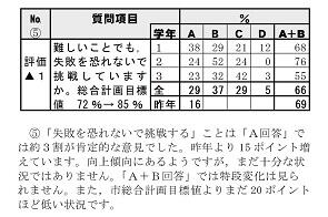 昨日は,意識調査から見られる生徒のよい面をご紹介しました。今日は,一方,今後の課題として伸ばしたい面をご紹介しましょう。