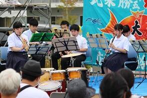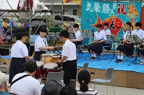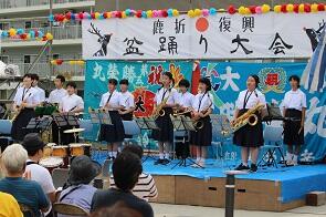 また,本校の吹奏楽部が鹿折地区の皆さんの前で堂々と演奏を披露しました。吹奏楽コンクールを終えてから,この日のために練習を重ね,頑張ってマスターしてきた曲を披露してくれました。この日の演目の中には2・3年生の3人だけで演奏する「ケルベロス・ドラムス」も含まれていました。この曲は去年のアンサンブルコンテスト県大会に出場したときの打楽器の曲目です。圧倒的なインパクトのある曲です。大勢のみなさんにこの曲を聴いてもらってとてもよかったと思いました。人数が増えたとは言え,まだ部員10名での演奏です。一人一人の実力をもっと高めていくために,今回の演奏は役だったと思います。応援していただき,楽器の運搬などいつもご協力をいただいている保護者の皆様には厚く感謝申し上げます。