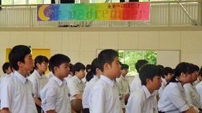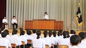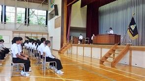 その後,2学期始業式です。校長先生は,2学期は「結果を求めよう」と話されました。まず,自分たちに期待をし,そして,自分たちのことが一層好きになって2学期を終えたいといった内容のお話でした。また,生徒同士が支え合うこと,励まし合うことが見られる学期にしてほしいという期待も述べられました。生徒は真剣にお話を聞き,2学期への意欲を高めていたようです。
