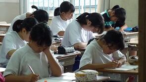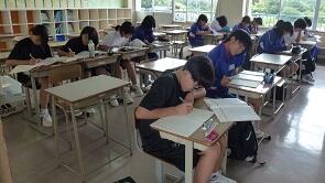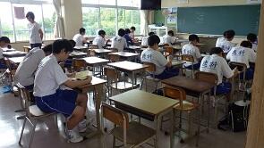 8月21日(水)と22日(木)は部活動ごとに集まっての学習相談日です。3年生も久しぶりに登校をして学習をしました。いつもは音楽室で楽器に触れて練習をしている吹奏楽部も,体育館や校庭でボールを使って走り回っているバスケ部やサッカー部も,この日は机の上に教材や宿題を出して,一生懸命に午前中2時間30分の学習をしていました。分からない所は友達や先生に聞いて解決することを求めているのですが,そういった場面よりは各自の課題に集中をして黙々と取り組んでいる生徒がとても多かったように思います。夏休み宿題の追い込みをする生徒もいれば,学力診断テストや受験の勉強をする生徒もいました。
