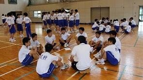 そのために,8月22日(木)には生徒と先生が一緒になって「演技図説明会」を実施して,当日の朝からの動きを確認し合いました。確認する中で問題点に気付き,修正案を出して計画をよりよいものに練っていく作業を行いました。午後1時からの1時間30分,丁寧な話合いが綿密に進められました。実行委員の生徒の皆さん,ご苦労様でした。中学生の力をしっかりと見せる運動会にしましょう。