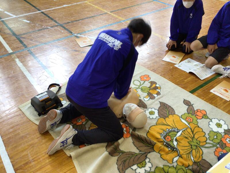 5月9日(木),2年生は気仙沼消防署の方を講師に,AEDの使い方などを練習しました。
