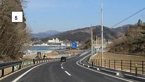 ⑤⑥の写真は段々鹿折の町に近づいているのですが,時間帯によっては交通量が気になります。だいぶスピードも出そうな道路です。