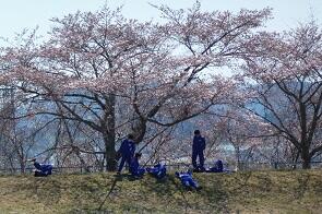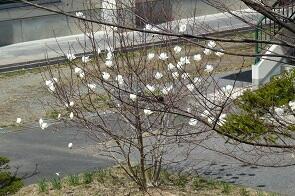 先週16日(火),春の陽気につられるように校庭南側の土手の桜が咲き出しました。とてもいい天気です。この日の昼休みのこと,数人の男子生徒が土手に集まってきたなと思って見ていると,桜の木の下で遊んでいるのです。土手に寝転がったり,わざと斜面を回りながら転げ落ちたり,ボールを蹴ったりと様々な過ごし方をしています。その気持ちがよく分かる,春の昼休みの風景です。また,西側のバスケットボールゴール付近には女子生徒がいました。ゴールに向かってボールを投げたり,その様子を眺めて声をかけ,談笑したりしています。こちらも長閑な風景です。春が来て本当に良かったなと感じているのでしょう。校舎の中庭にはには白い大きな花が咲き出しました。白木蓮です。コブシも中庭で咲き始めているのですが,白木蓮はその花が大きく,純白の花が美しいのです。桜ももうじき満開となるでしょう。