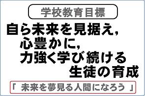 ところで,教育目標そのものは前年度とは変わらないのですが,生徒向けのスローガンを新たに設けました。生徒たちに分かりやすい表現を,受け入れやすい表現を目指して「未来を夢見る人間になろう」と示しています。