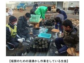 被災して避難所や仮設住宅にいる生徒, 親の失職により生活が苦しい生徒等で就学援助を受けている生徒が7割に達してい る。しかし,生徒は学校に来ると笑顔で学校生活を送っている。不安や辛さを心の中に秘め,笑顔で今を乗り越えようとしている姿がしっかり見て取れた。そこで,私たちは「笑顔」と「あいさつ」が,生徒だけで なく,地域にも一番の力になると考えた。 生徒は,生徒会を中心に全校生徒で「あいさつ運動」 を繰り広げている。体育館は,10月まで避難所として活用され,校庭にも120世帯の仮設住宅が建っている。これまで以上に多くの地域の人たちと接する。「笑顔」が「あいさつ」を生み,「あいさつ」が「笑顔」を生む。生徒の心のケアだけでなく,地域にも大きな力になっている