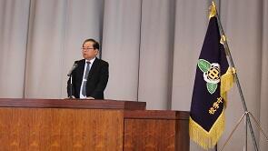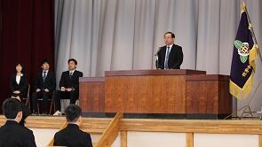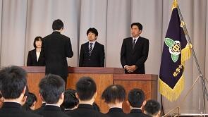 入学式に先立って,4月8日(月)は,まず新2・3年生が新年度のスタートを切りました。最初は新しく赴任された先生方との出会いです。教頭先生を始め3人の先生方が紹介され,生徒会副会長の尾形君が歓迎の言葉を述べました。3人の先生方からは自己紹介を含めて生徒にお話をいただきました。(上の写真)よい出会いの日となりました。