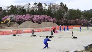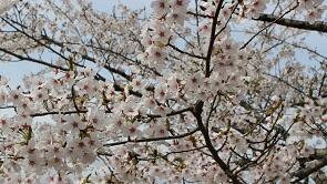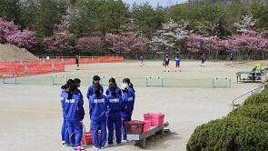 さて,登校坂を登り切った校庭の周囲にも桜の木がたくさんあります。やはり色々な品種の桜だと思うのですが,生徒たちは校庭や教室の窓から,この桜の風景を楽しんでいます。それにしても,去年の今頃はまだ校庭は工事中だったのだなと改めて思わされました。