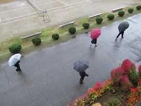 今日から10月。雨の朝となりました。今日から衣替えですが,本校では当面制服については,天候に合わせて,夏服か冬服かを個人で選択させています。また,市教委からの指示で,感染症レベルも下がったことから,朝の健康観察は昇降口の中で行います。昇降口の解錠もこれまでどおり7:40とします。ご協力をお願いします。