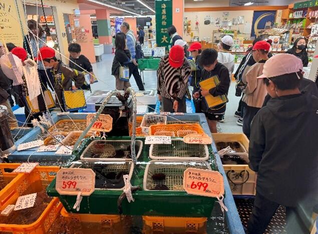 ミヤカンでは、工場で缶詰が作られる様子を見せていただきました。1階の販売所では、5,000円以上もする高級缶詰が販売されていて驚きました。ミヤカンが日本有数の缶詰工場であることが分かりました。