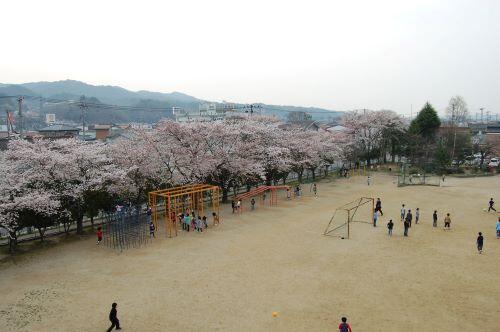 昭和57年の頃の校舎と変わりませんが,校庭に花壇がたくさんあることが分かります。