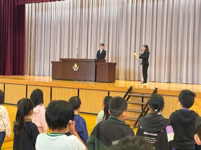 各学年で工夫し、学校のことや生活のこと、そして海と生きる探究活動で調べている内容についてを互いに発表し合いました。また、発表を聞いて興味をもったことについて質問し合ったりもしました。今年度もケンタロ・オノさんに通訳をしていただきながら、とても楽しい雰囲気で交流することができました。