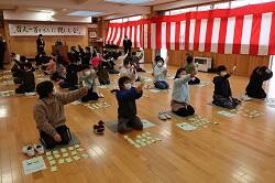 「私がこうして百人一首を読めるようになったのは,子どもの頃,母が読んでくれたからです。お正月になると友達や兄弟と母が読んでくれた『百人一首』を楽しみました。友達や兄弟より多くカルタをとるために一生懸命に和歌を覚えました。お正月になるとカルタ取りが楽しみでとてもわくわくしました。その時には和歌の意味はよく分かりませんでしたが,後から中学校や高校で和歌を勉強して,詠んだ人の気持ちや思いを知りました。皆さんもいつか勉強すると分かるようになると思います。もう上の句を聞いただけで取れる人も多くなっていることは素晴らしいですね。これからもたくさん和歌を覚えてください。」等のお話がありました。
