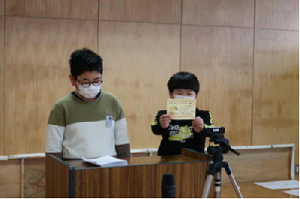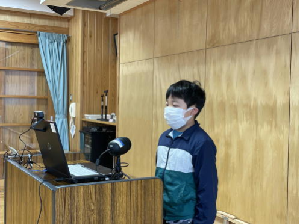 1年生と4年生の代表児童が,3学期の抱負や冬休みの思い出を発表しました。2人とも,原稿を見ないで,カメラを見ながらしっかりと発表できました。