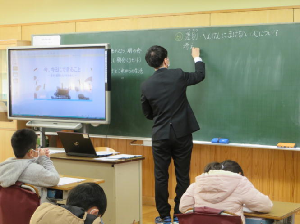 最後に担任の三上先生が「私も気仙沼に来て,みんなと一緒に海と生きる探究活動の学習をして,気仙沼や鹿折が大好きになりました。」と熱い思いを語りました。全職員が参観する中,3年生の子供たちは真剣に授業に臨み,しっかり自分の考えを発表していました。子供たちの成長を大きく感じた時間でした。