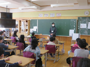 警察の方からは,不審者による被害から身を守るための「いかのおすし」についてのお話をいただきました。また,社会のルールを守ることの大切さについてもお話があり,「万引きをしない(人のものを盗らない)」「落書きをしない」「いじわるをしない(インターネットに悪口を書き込まない)」などについて詳しく児童に教えていただきました。