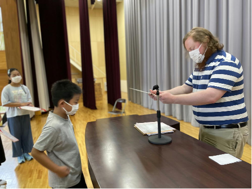 「大きな声」は出せませんが,子供たちは楽しそうに答えていました。