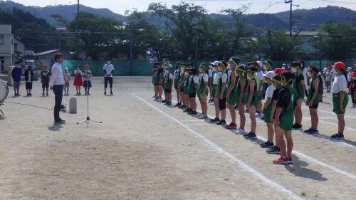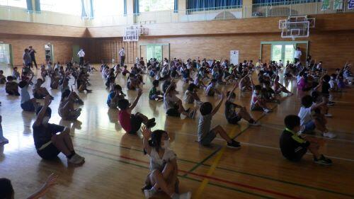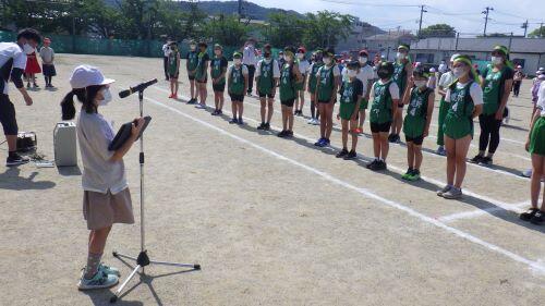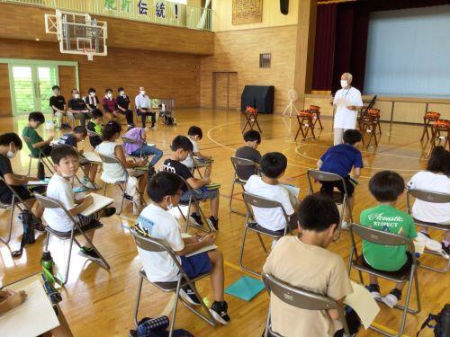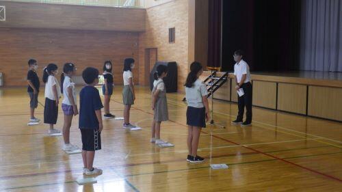 本日2校時に5年生の野外活動結団式を行いました。班長によるグループのめあての発表,校長先生のお話,引率する先生方の話などを行いました。
