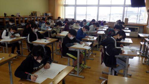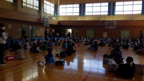 本日、気仙沼市の総合防災訓練に伴い、午後から小中合同防災訓練を行いました。午前中は各地区で防災訓練を実施しました。講師の先生による講話を聞いたり、津波を想定した避難訓練を行ったりしました。午後には1~4年生は、小学校で防災に関する授業を行いました。「稲村の火」のお話を聞いたり、防災すごろくを行ったりして学びました。5、6年生は中学校へ行き、中学生の避難所運営訓練に参加しました。本日はとても寒い中でしたが、充実した訓練となりました。
