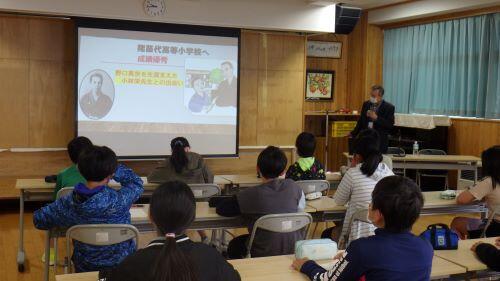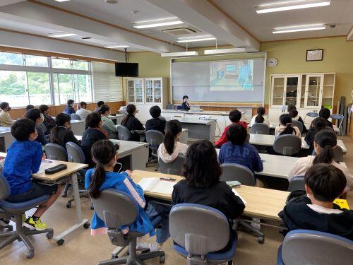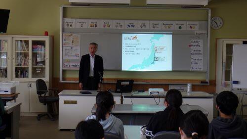 4年生は、海と生きる探究活動の学習で舞根海里森研究所の畠山信様に来校いただき、森と海の関係についてお話いただきました。畠山様の経験をもとに、「森は海の恋人」運動のきっかけを丁寧に説明していただきました。