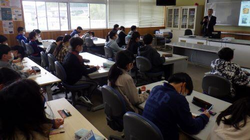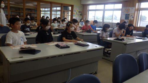 今日の講話をもとに、ワカメについて調べたり、漁港に行き、ワカメを実際に見せていただいたりします。本日はありがとうございました。