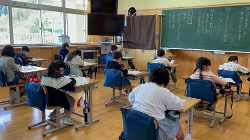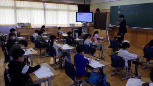 本日放課後に3~6年生がPU(パワーアップ)タイムを行いました。この時間は,算数の苦手な内容を中心に復習を行っています。低学年の先生や少人数の先生方も各学年に入り,丸付けを行ったり,解き方を教えたりしています。