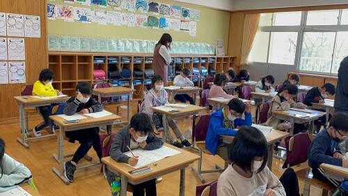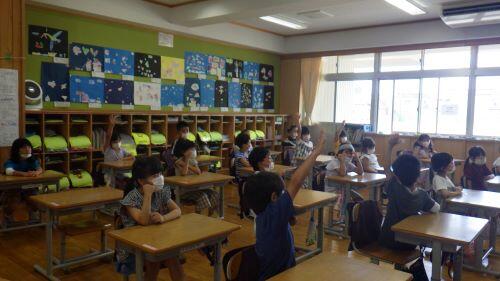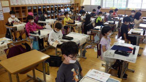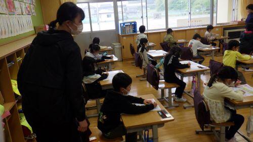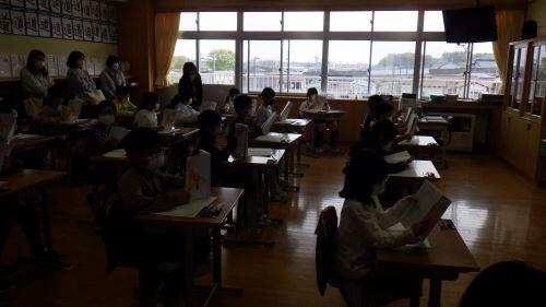 今日5校時,1学期2回目の学習参観を行いました。あいにくの雨模様でしたが,お家の人が来ると,子供たちはとてもうれしそうな表情になりました。