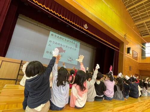 本日、学芸会の児童公開を行いました。児童は、これまでの練習の成果を発揮し、どの学年も見応えのある演技でした。また、鹿折こども園の園児も児童公開を見学し、お兄さん、お姉さんの演技に大きな声援を送っていました。