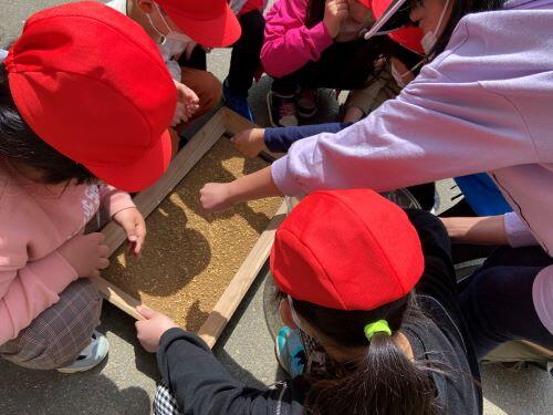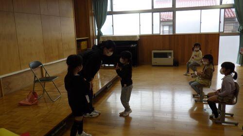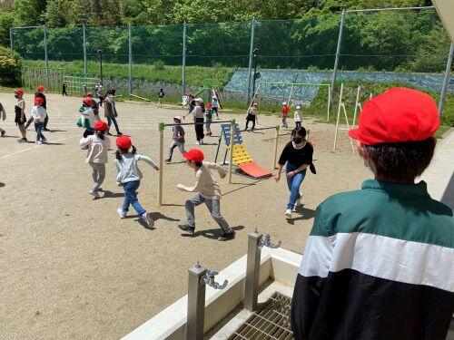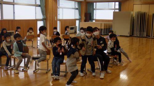 本日、鹿折こども園の年長の子供たちと本校1年生児童が交流会を行いました。