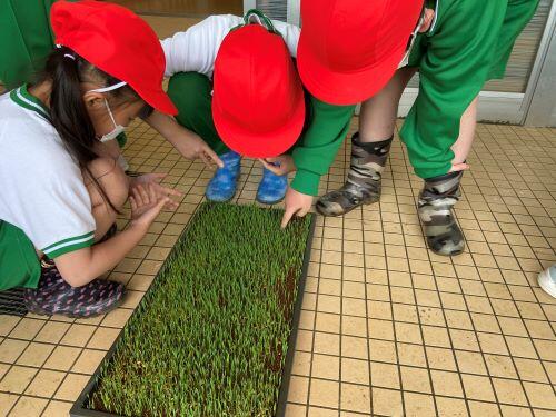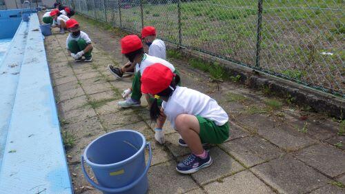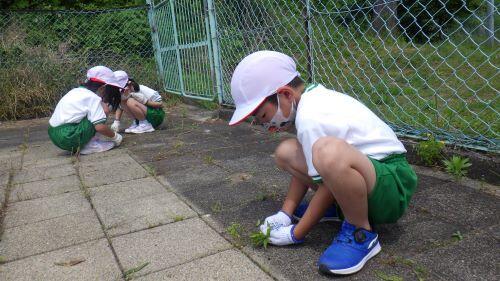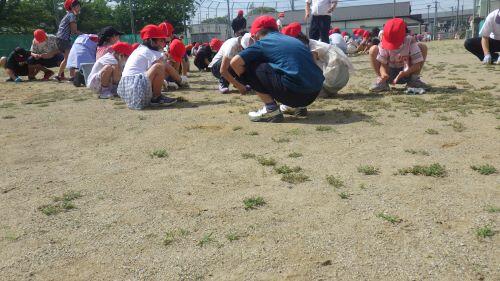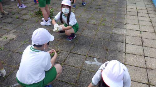 6月後半からの降雨と暑さで,校庭にも草が目立つようになりました。本日の業前活動では,グリーンタイムと称し,縦割り班ごとに草取りを行いました。短い時間でしたが,草取りを行い,校庭もすっきりとしました。