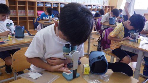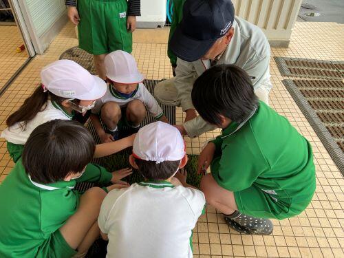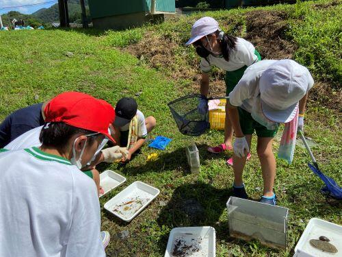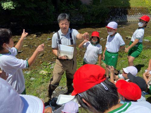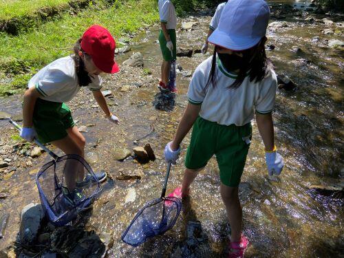 4年生の「海と生きる探究活動」の学習で,鹿折川上流の生き物の調査を行いました。子供たちは生き物を見付けると,とても喜び,生き物の名前などを講師の宮城教育大学の棟方先生に聞いていました。