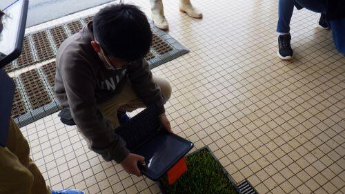 今日、2年生が学区内のかもめ通り商店街へ町たんけんに行きました。かもめ通り商店街には、春に出かけているので、今回はさらに調べたいことについて、商店街の方に聞きました。タブレットを使って、お店のひみつやよさを写真にとったり、お店の人に進んで質問したりして、調べることができました。