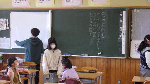 今日から明日30日まで,鹿折中学校の2年生が小学校の職場体験を行います。