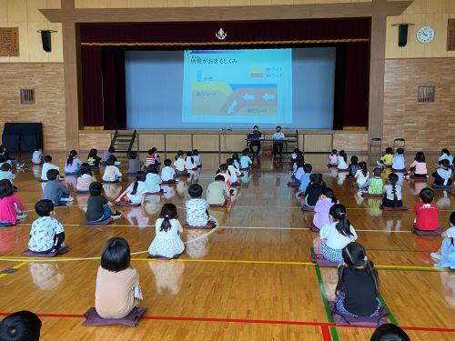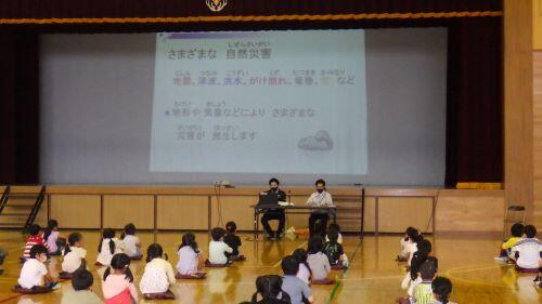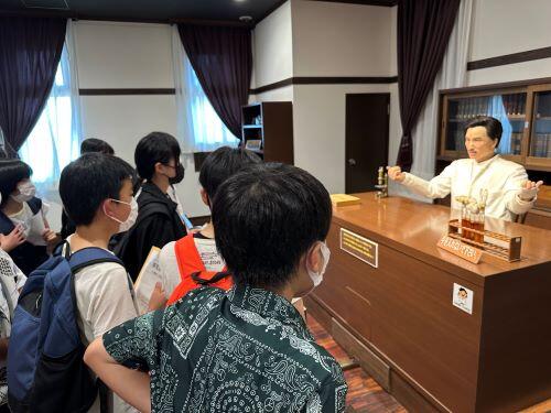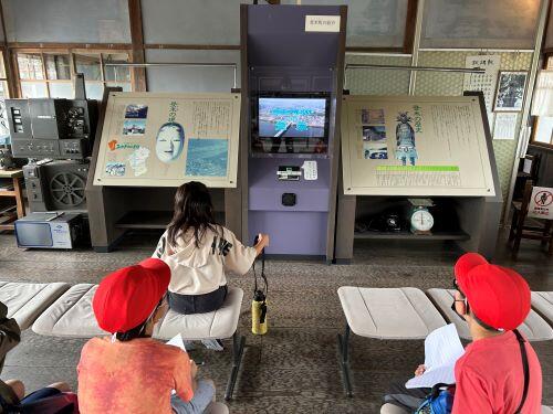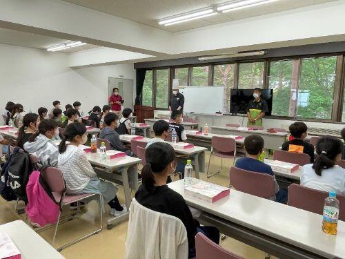 防災センターでは、地震や津波、火災の危険性について教えていただいたり、実際に煙の中を歩いたり、地震体験を行ったりしました。また、防災センターの中の様子も見学させてもらい、センターの仕事について知ることができました。