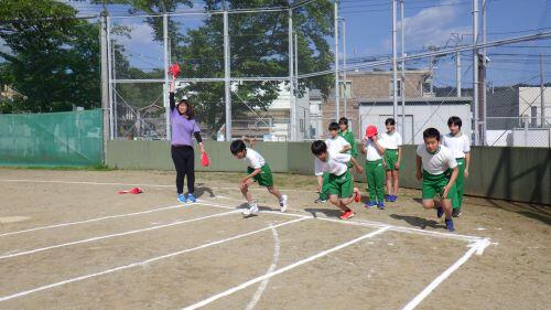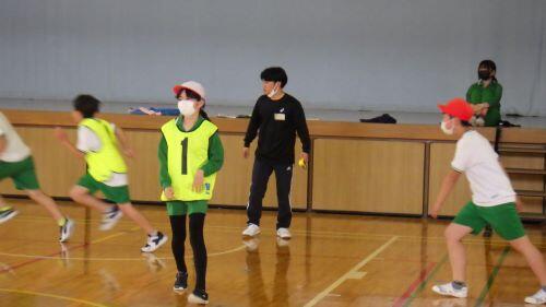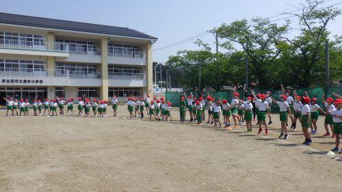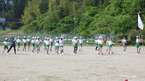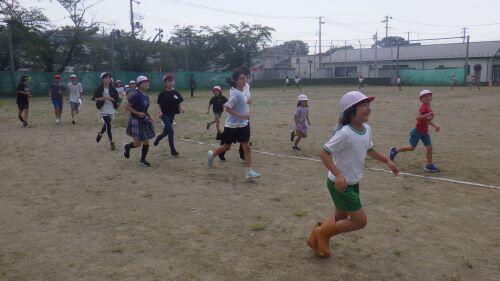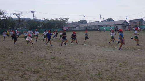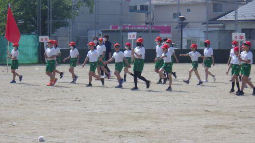 本日1校時、1年生の持久走記録会を行いました。校長先生と一緒に体操を行った後、自分の記録に挑戦しようと頑張りました。