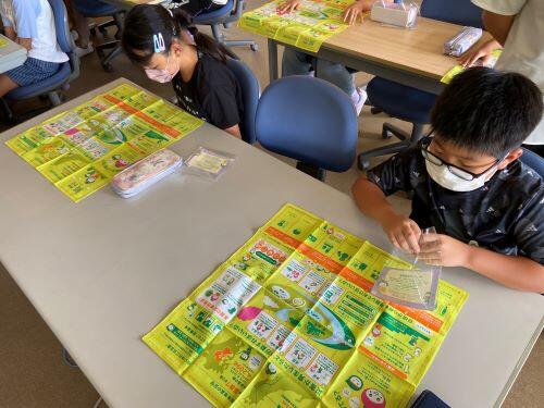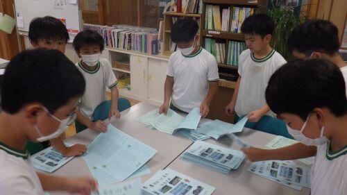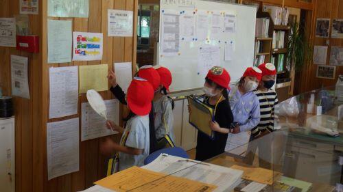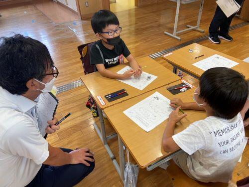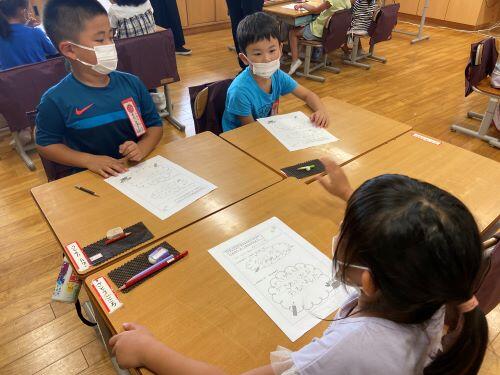 本日の5校時、外国語(英語)の学習で5年生が道案内を行いました。グループごとに地図にお店を書き込み、先生方に道案内を行いました。ALTの先生が話す案内の仕方を丁寧に聞き取り、上手に道案内を行っていました。