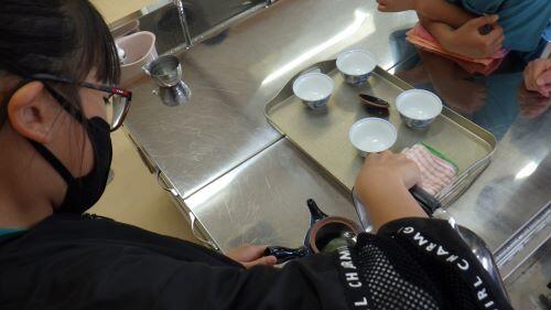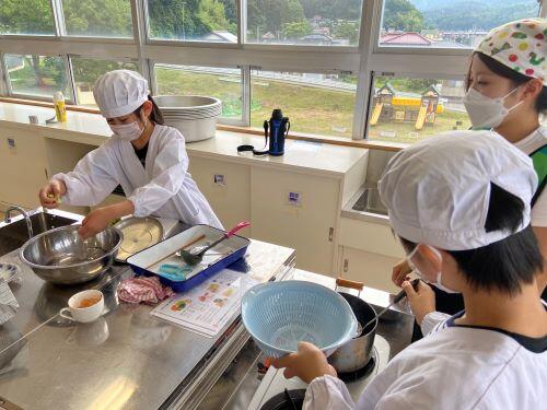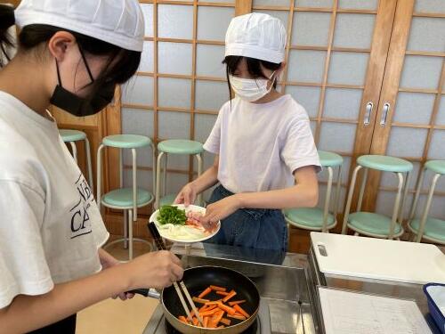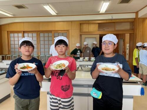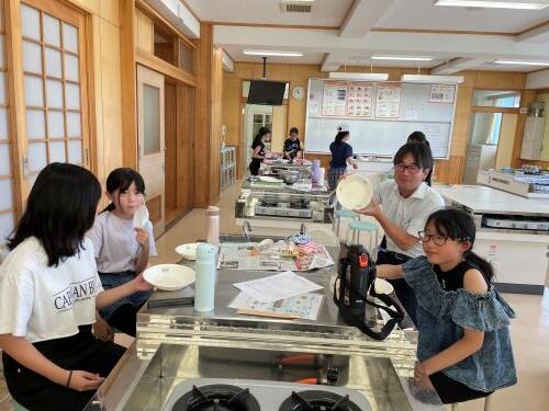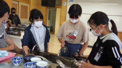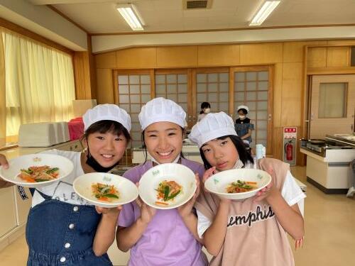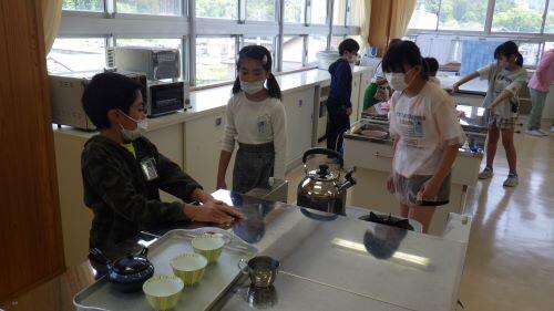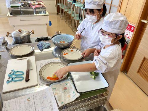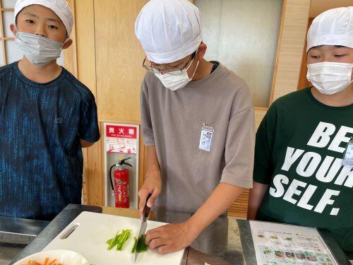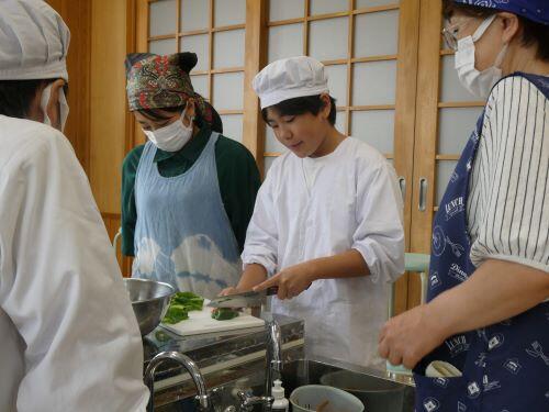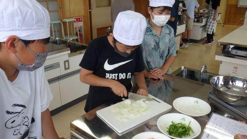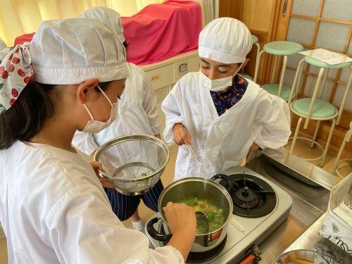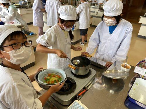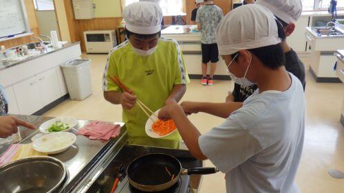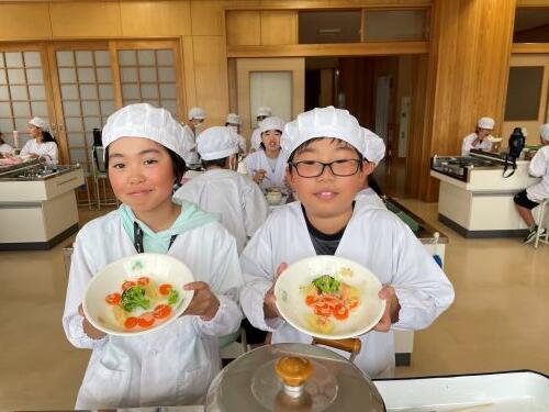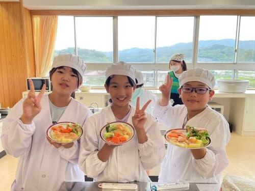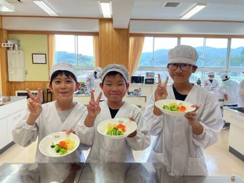 5年生が家庭科の調理実習を行いました。グループ毎にゆで野菜サラダを作りました。水の量が多すぎて沸騰に時間がかかったり,野菜を切るのが難しかったりしたようでしたが,どのグループもきれいに盛り付け,美味しくいただきました。