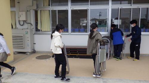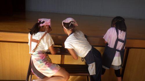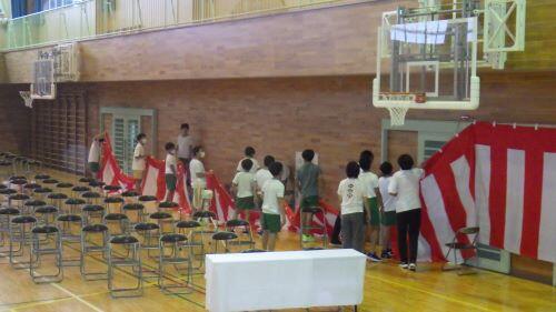 本日6校時、5・6年生全員で学芸会の準備を行いました。使用する体育館や通路の清掃や大道具や楽器の準備を行いました。